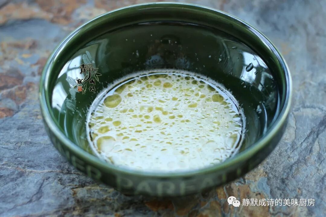 5、然后再加几汤匙纯净水,点少许香油,蒜汁儿就做好了,简单,但要注意蒜素的产生过程。