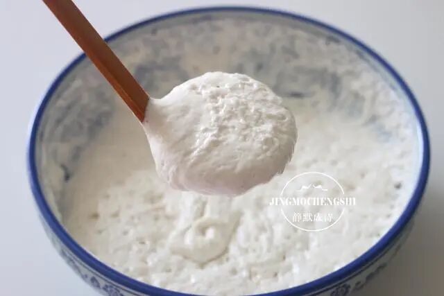 7、这是发酵好的米浆,能看到体积明显变大,且表面开始有气泡产生。