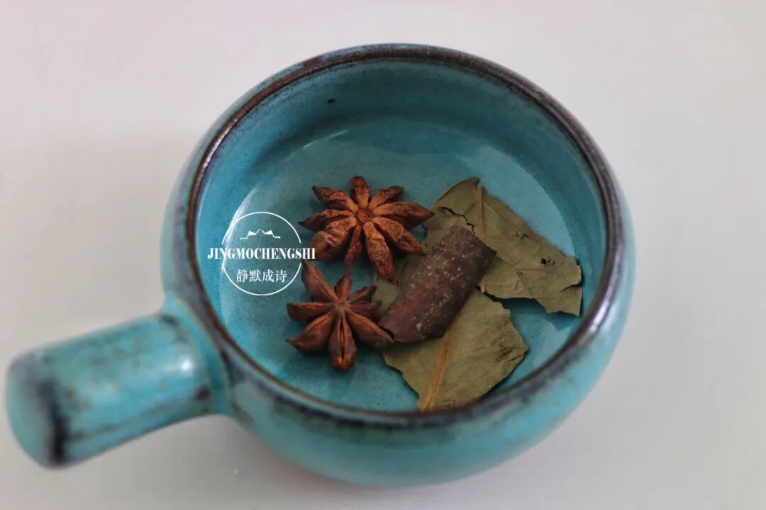 第5步:做蒸肉用的米粉,八角、香叶、桂皮不能少,还可以再加一小撮花椒。