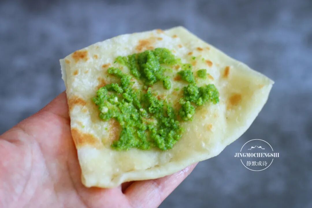 7、来块儿烙饼,抹上一层韭菜花酱,把烙饼一卷,不用准备其他菜,也能吃个饱。