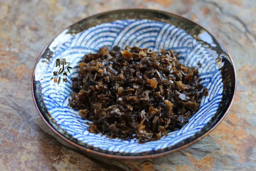 4、黑木耳完全泡开之后,清洗干净,切成木耳碎待用。