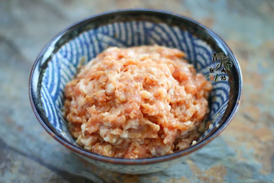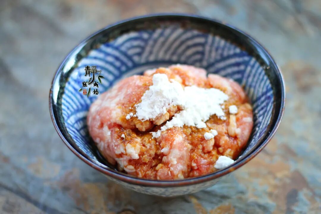 2、猪肉末用一肥九瘦或者是全瘦的都行,在下锅前要先处理一下,它的口感才会嫩。肉末中加入淀粉、酱油、适量盐,充分搅拌均匀。