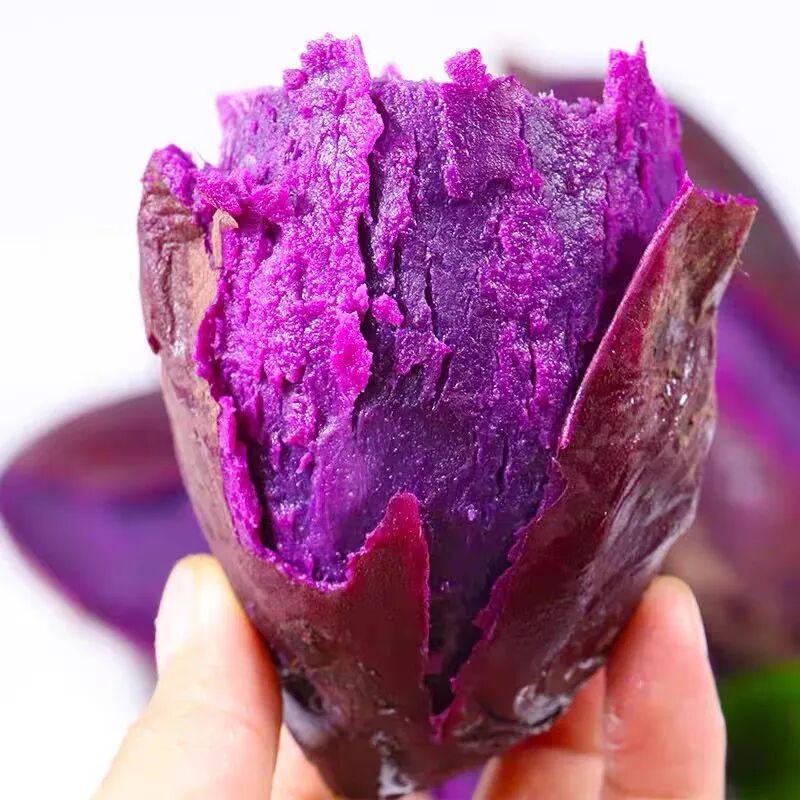 紫罗兰紫薯与普通番薯相比,口感更甜糯,绿色种植环境,无色素添加无污染,花青素含量较高,营养更丰富。