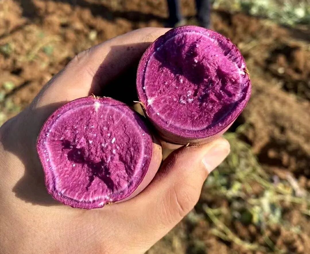 与普通番薯的高产量相比,紫罗兰紫薯为沙地种植,无污染,口感甜糯营养丰富。