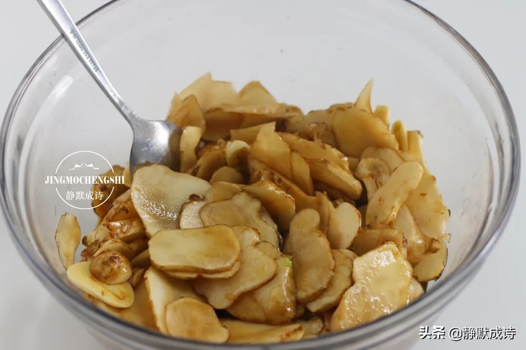 5、吃前把鬼子姜捞进盘中,淋入少许香油拌匀,清脆无比又异常清香,爽口的很,有了它,连肉都不吃了。