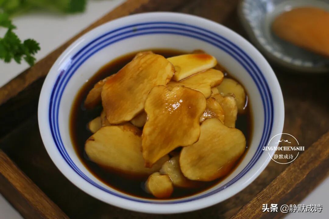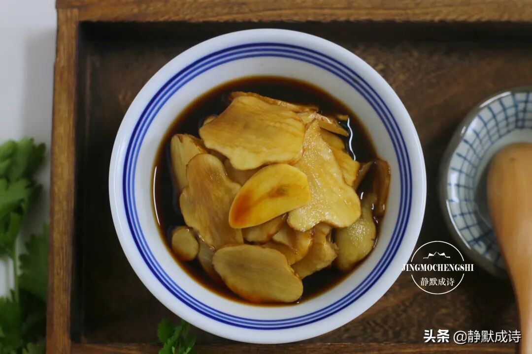 【食材准备】:鬼子姜500克、鲜酱油2汤匙、陈醋5汤匙、盐3克、白糖3克、蒜半头、香油少许。