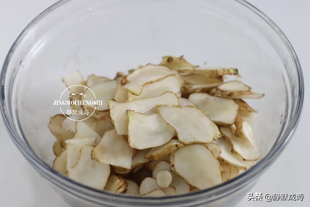 2、鬼子姜切片,如果这个鬼子姜块儿比较大,切丝亦可,会更快地入味儿。