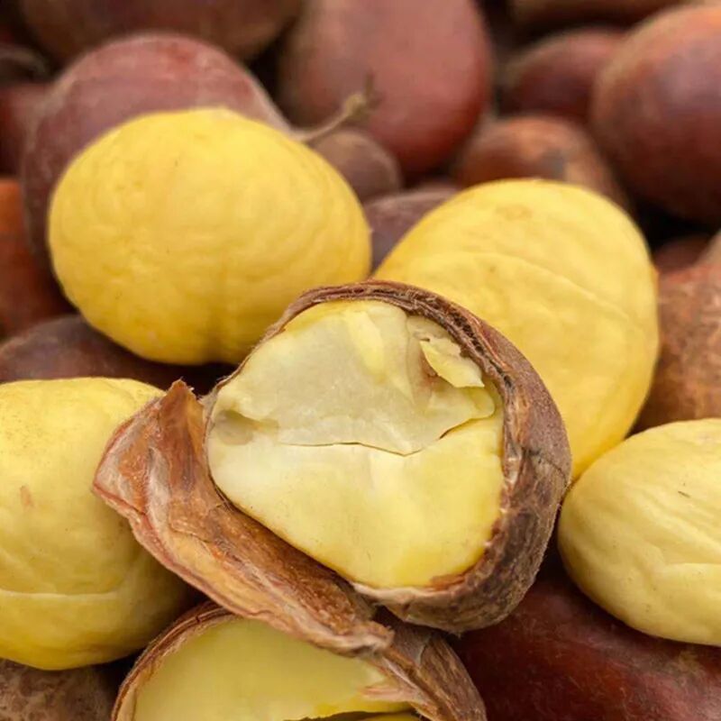 其实,咱们的板栗,刚刚收到吃就是很甜的那种。它是老树油栗,栗肉是黄色的,生吃就很甘甜。有人会问:栗子还能生吃?当然了,生吃板栗的作用可大了,它能补肾补气,成年人每人每天吃上十个八个的生板栗,中气足肾也好。