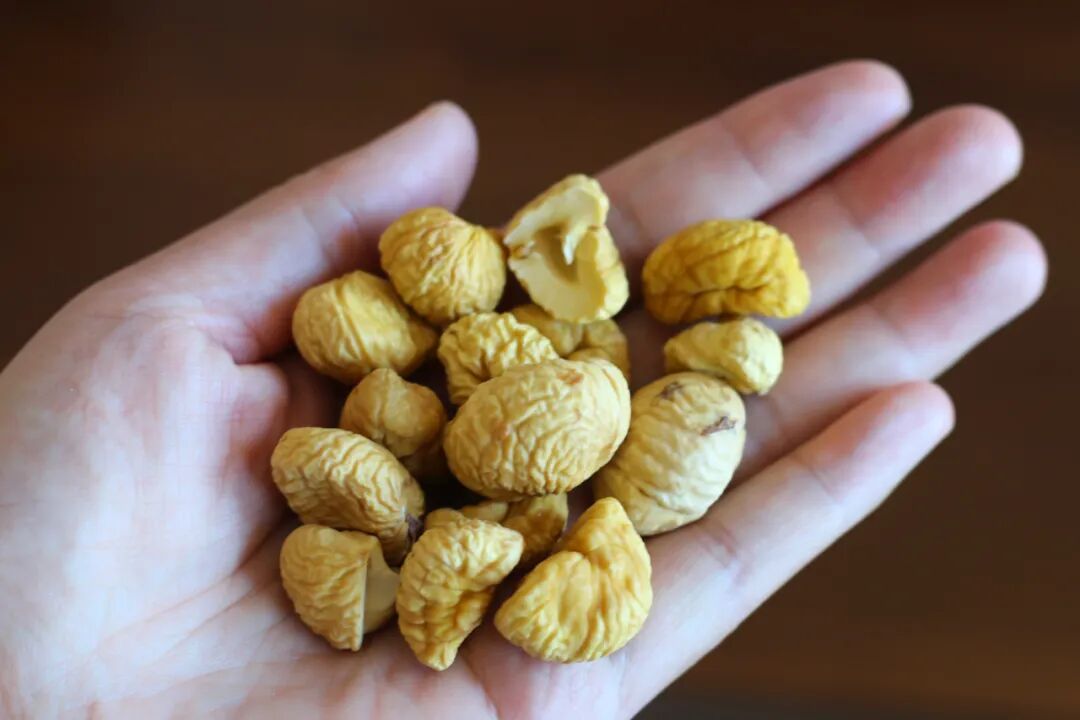 为什么建议大家收到后要晾晒1-2天?原因有二。一是让板栗表皮风干一点,这样更容易剥开,而且栗肉上的皮也容易剥;二是让栗肉中的淀粉糖化,吃起来会更甜。