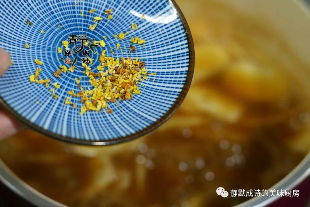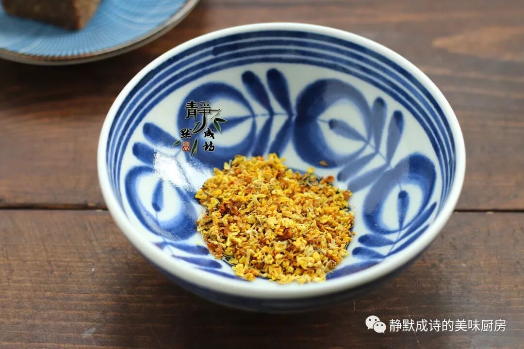 3、干桂花,给这道美食增色添香,最好不要少了它。