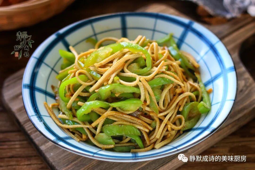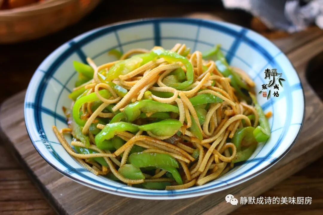 1、把豆腐丝换成豆皮儿的话,就成了东北名菜尖椒炒豆皮儿了,素菜中的名菜。