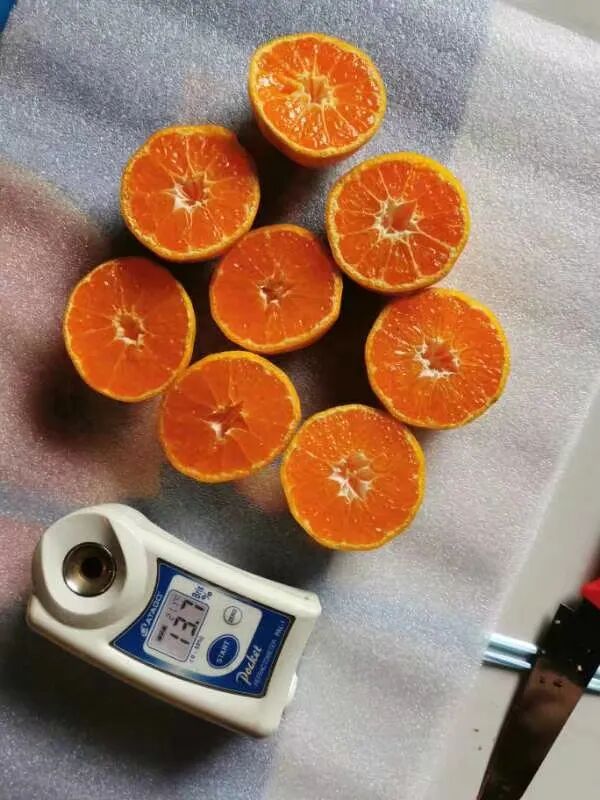 这款小橘子,全部是树上红,皮薄汁多,基本纯甜,如果说有一点点酸的话,也只占到了0.5%。不仅无籽而且无渣,入口即化!