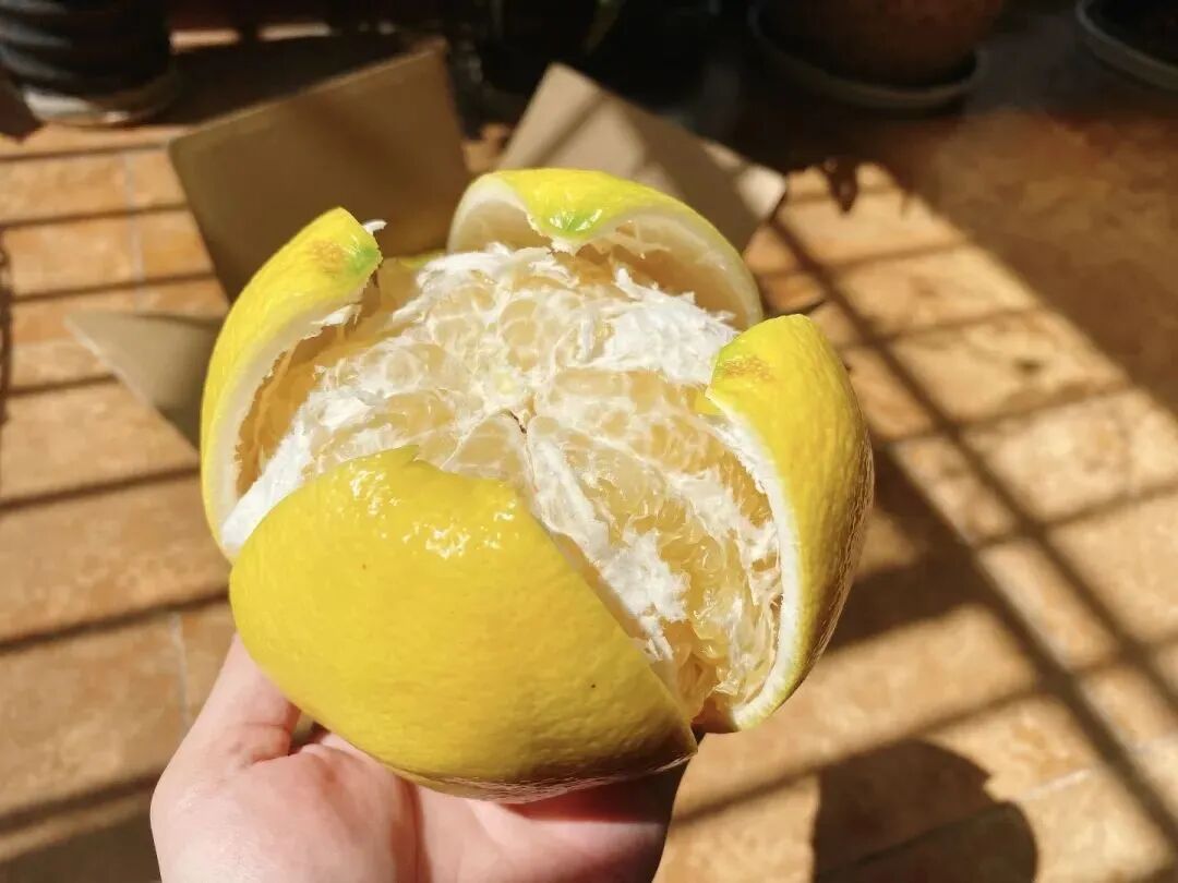 而这款葡萄柚,你徒手就能剥皮!普通柚子和它一对比,皮的厚度至少是它的3倍。