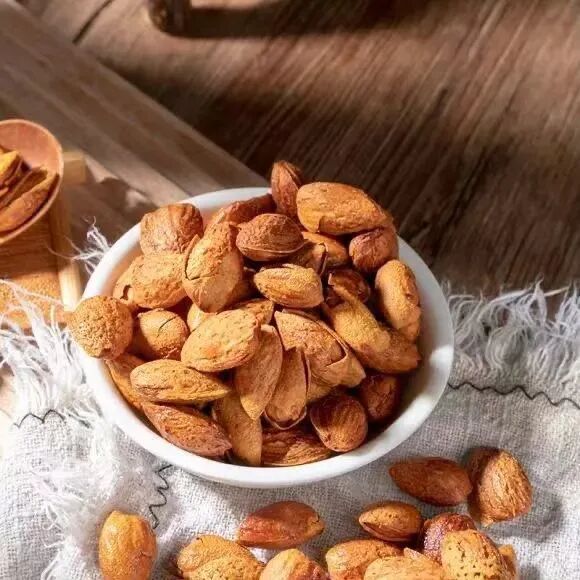 巴旦木,是扁桃的内核,新疆特产。它是一种营养密集型的健康零食,富含蛋白质、维生素E、膳食纤维、胡萝卜素,而且不含胆固醇,具有预补脑健脑、保护肌肤和预防便秘等食疗功效。