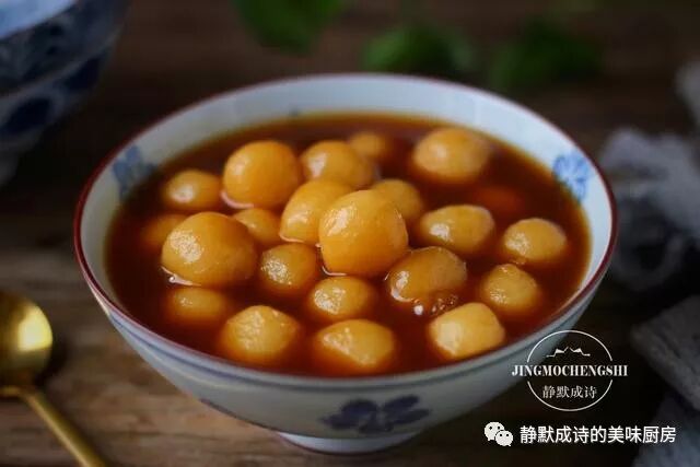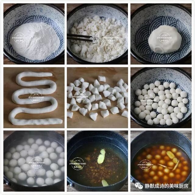 【食材】:糯米粉100克、红糖2汤匙、姜3片、热水80克左右。