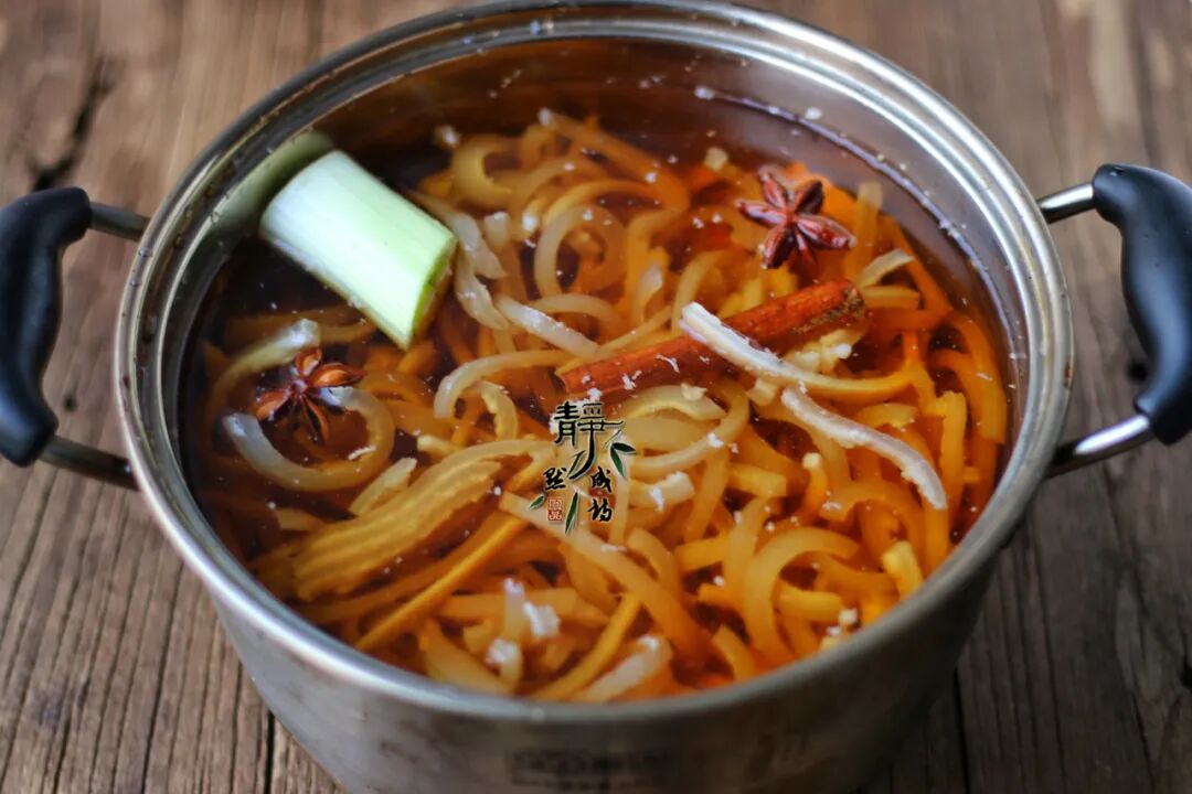 4、老抽可放可不放,不放的话,猪皮冻就是白色的,洁白如玉,看个人喜好。