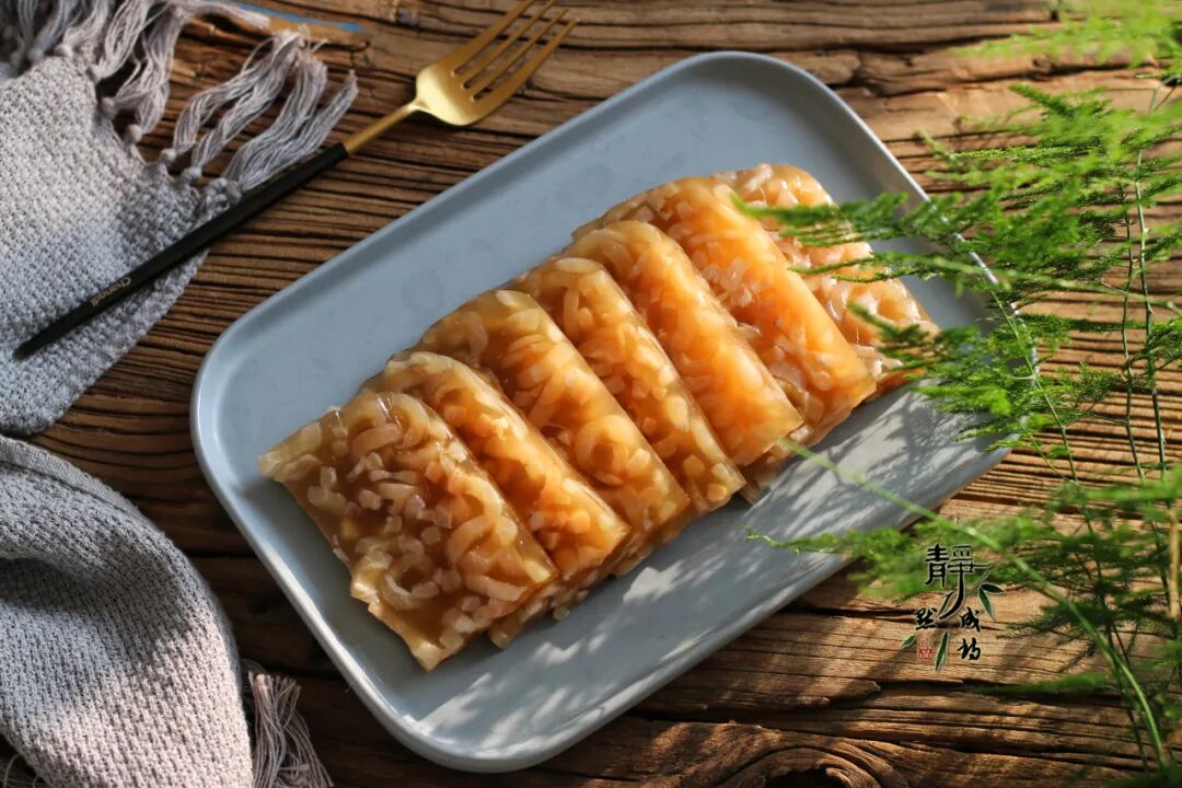 猪皮冻,汉族传统特色美食,做法简单,口感Q弹,深受人们喜爱。由于长时间的熬制,猪皮冻中的胶质含量丰富,它富含蛋白质以及硫酸皮肤素,多食可以软化血管,促进造血功能,促进皮肤愈合以及美容除皱,据悉,猪皮冻的胶质的造血功能比阿胶还好,真可谓是物美价廉。