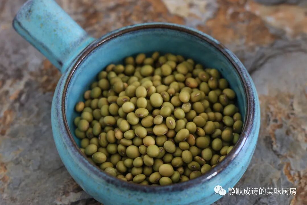 2、老黄豆也分品种,我用的是外皮有些发绿的老黄豆,取50克,洗净待用。