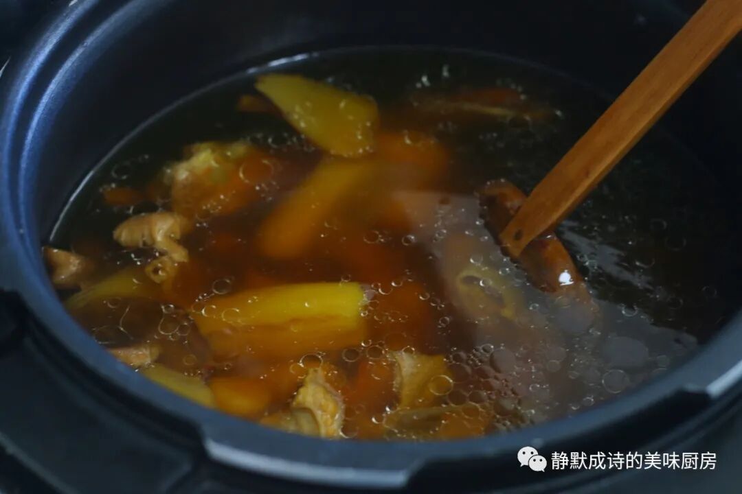 再一个,凡是用肉类煲汤,大家要记住,汤中嘌呤的含量既与煲汤时间相关,也与肉类的分量相关,所以,用肉类煲汤时,大家不要放太多的肉,减少肉类用量,加上用压力锅来煲汤,两个方面做到了,汤既好喝又健康,记住了没?