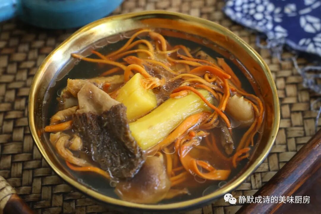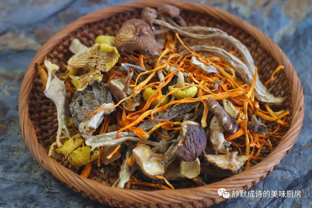 2、我用的是现成的云南菌汤包,它里面有虫草花、鸡油菌、羊肚菌、姬松茸、茶树菇、鹿茸菇等,品种丰富多样,煲汤时一次用上一包,很方便。
