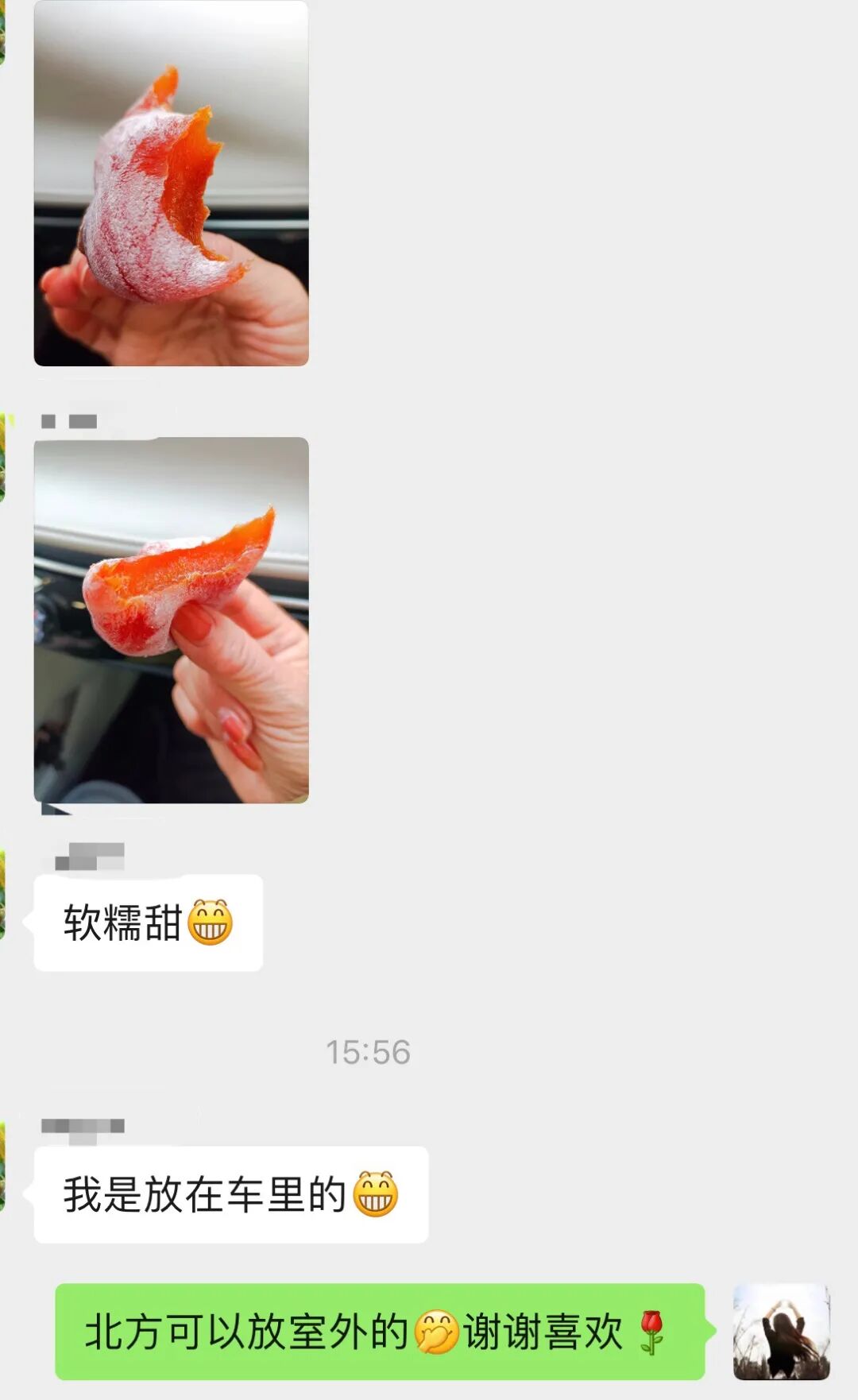 这是今天下午一位福建的顾客朋友的反馈,她收到后分给朋友吃,朋友立马让她帮忙下了三单柿饼。