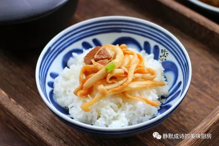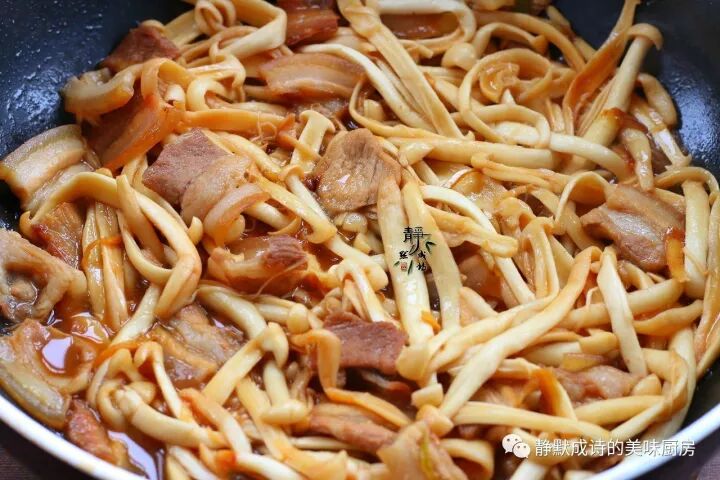 2、白玉菇下锅前用手攥去水分,不然会出很多汤。