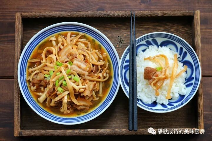 回到家先把米饭焖上,再拿出冰冻的五花肉,用微波炉解了冻,把白玉菇洗净,用手撕开,坐上炒锅,几分钟,一盘热气腾腾香气扑鼻的白玉菇炒肉片就出锅了,盛一碗米饭,一餐就解决了,解决地还很满意。