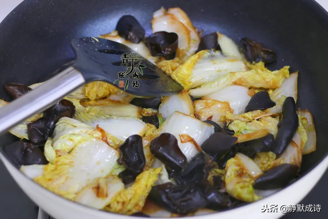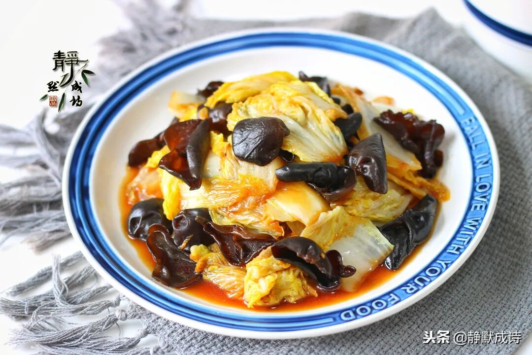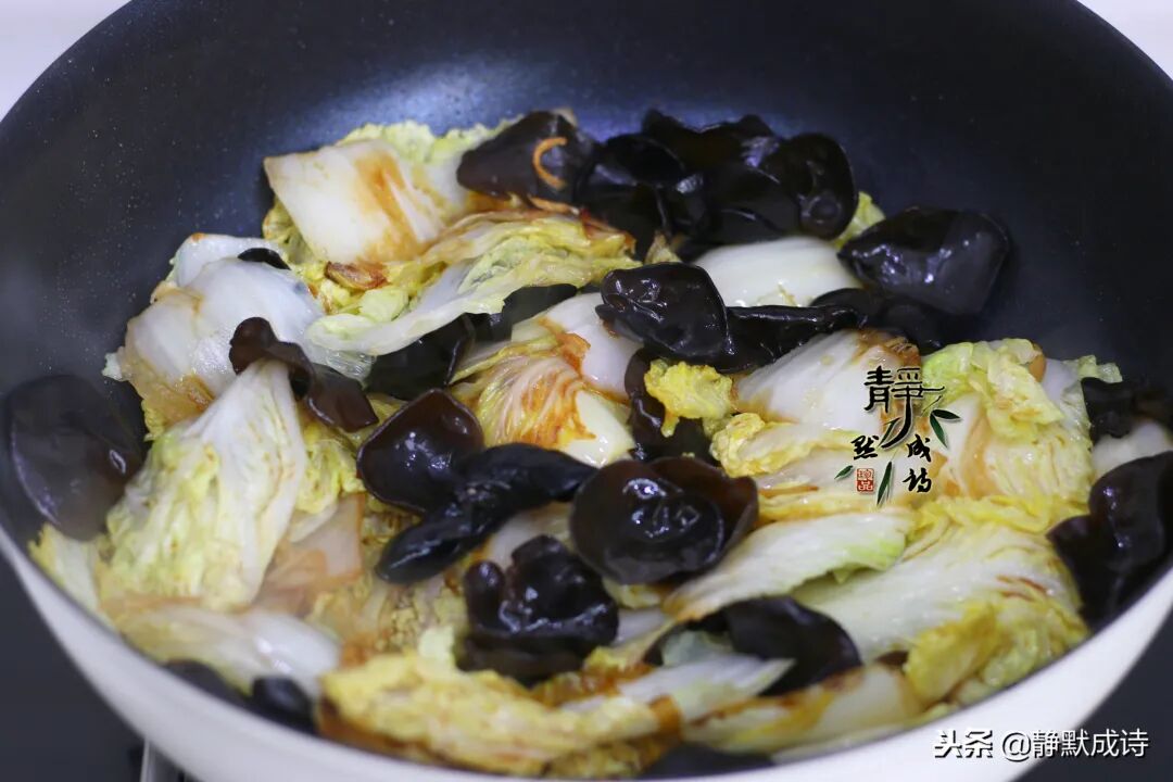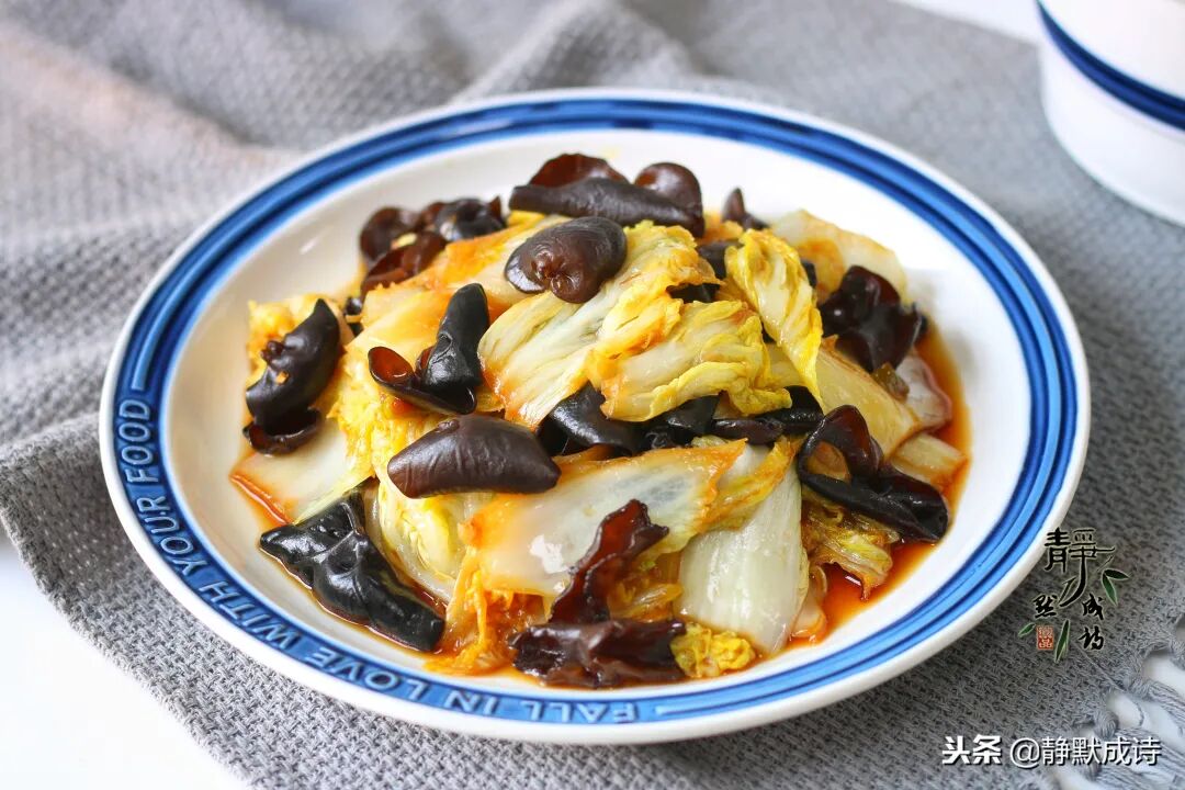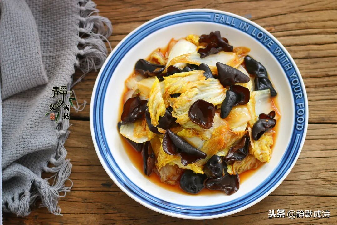 8、给肉都不换的素菜,白菜入味儿,木耳脆爽,美味有了,营养有了,健康也有了。