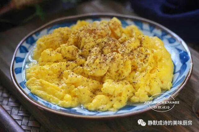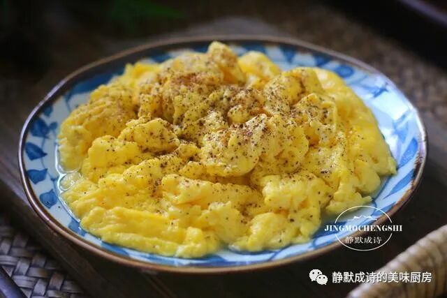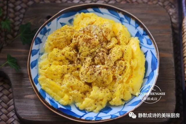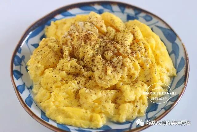 7、我是加了少许盐的,所以,它有淡淡的咸味儿,若有若无,不至于口味过于清淡。有人或许不喜欢黑胡椒碎,但我建议你一定要加,不能省略它,有了它,这道炒蛋,味道更加特别,但又不是突兀的那种,你会喜欢。