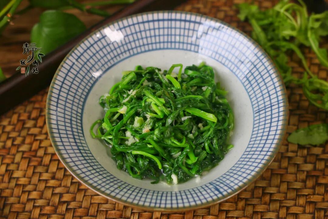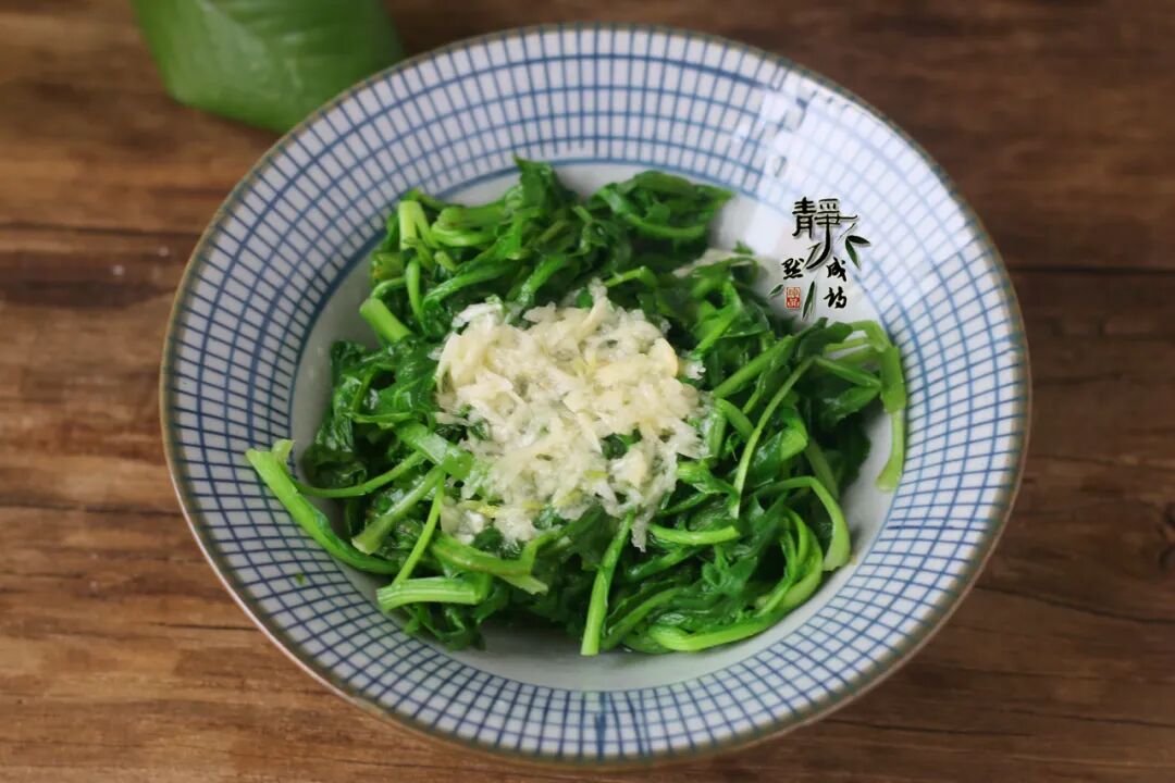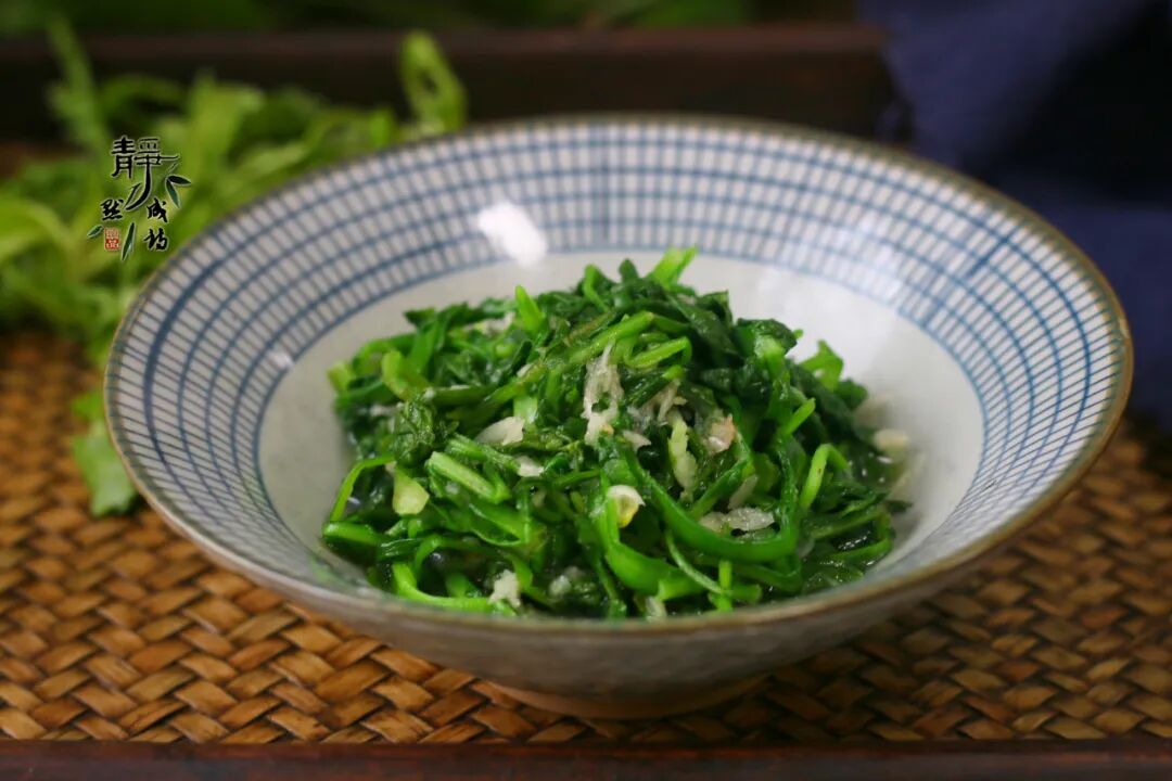 【食材】:荠菜两把、蒜半头、香油少许、盐适量。