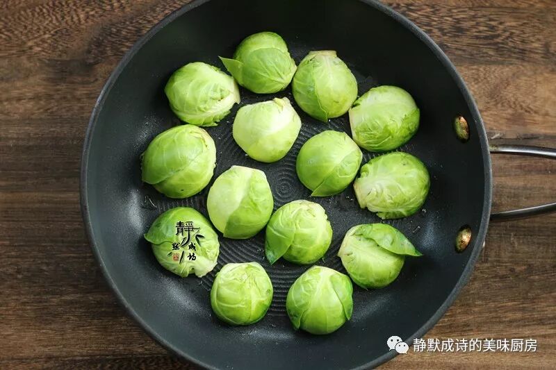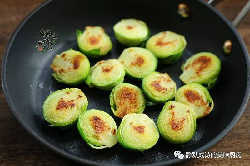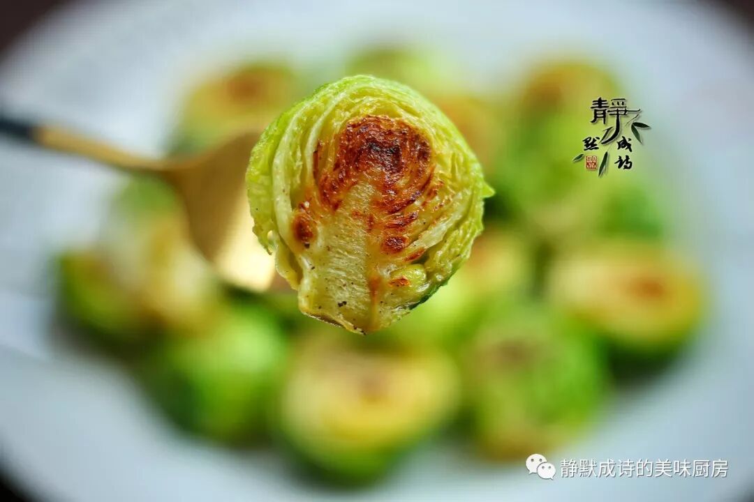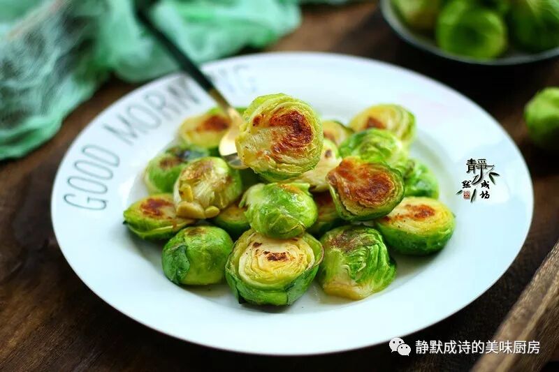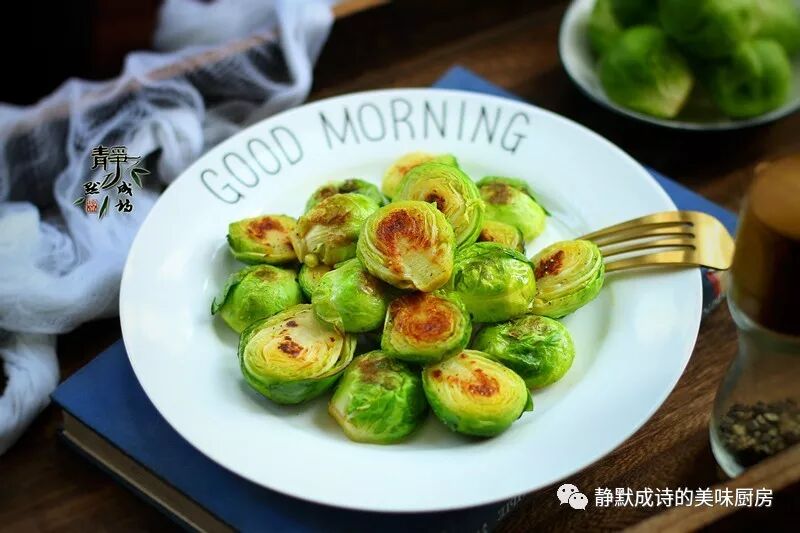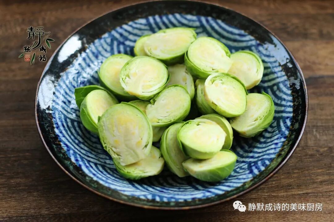 孢子甘蓝的口感稍稍有些发苦,有些人可能会吃不习惯,但它的苦味比苦瓜要淡上很多,是我喜欢的口感。它的烹饪方法也有许多,可以用烤箱烤,也可以清炒、烧汤、凉拌。除了以上,孢子甘蓝还可以像我今天这样煎着吃,我喜欢在早上煎一小盘,顺便煎根脆皮烤肠或是鸡蛋,来片面包或是一个小蛋糕,再来一杯牛奶,很棒的一顿早餐就完成了,用时短不说,还营养。做法分享给大家。