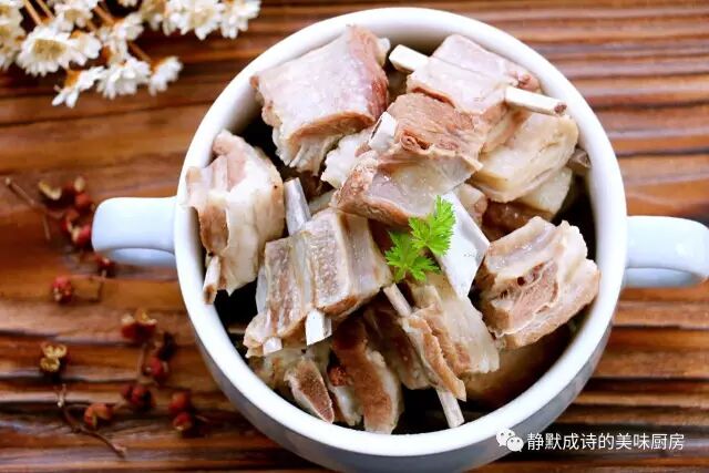 羊肉性温,冬天多食羊肉有助于御寒保暖,而且还能增加消化酶,保护胃壁,修复胃粘膜,帮助脾胃消化,起到抗衰老的作用。羊排,羊身上最为鲜嫩的部位,不论是做羊肉手抓饭还是清炖红烧,羊排都为上选。今天分享给大家的是【清炖羊排】。准备好羊排、盐、热水,再加几粒花椒即可。