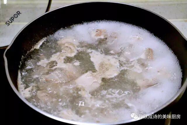 过水清洗干净后冷水下锅,焯水煮出血沫。
