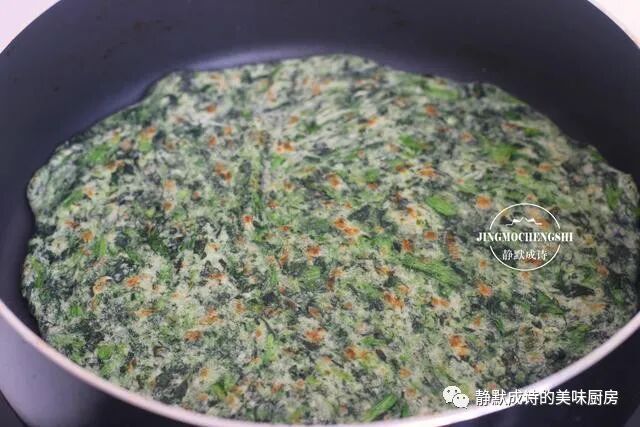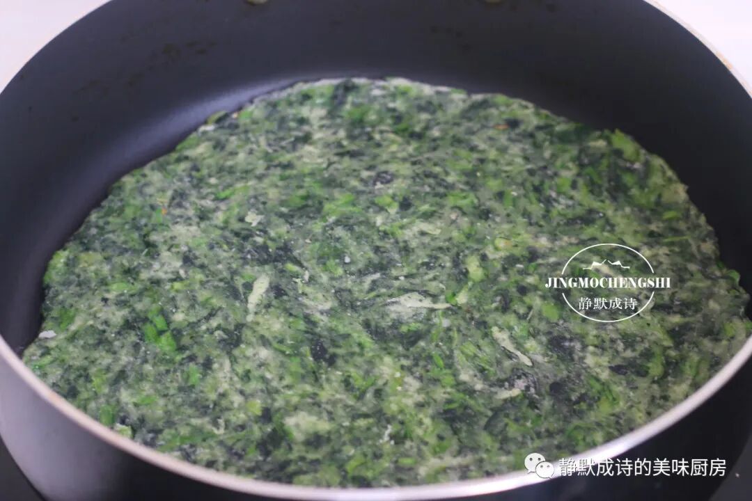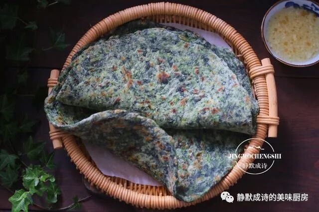 1、这个饼以菜为主,面为辅。和面时不加水,依靠蔬菜中的水把它和成面团。