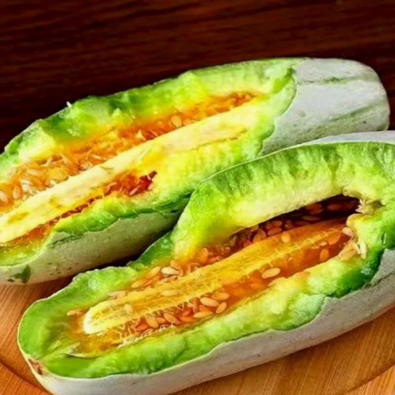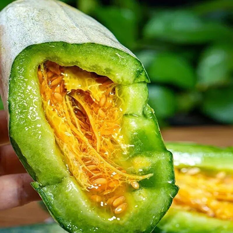“瓜肉如冰糖,瓜汁似蜂蜜”,说的就是羊角蜜的味道,它的口感与味道,比它的样貌不知道要美妙上多少倍。这个形似西葫芦的水果,也不知道俘获了多少吃货的胃。
