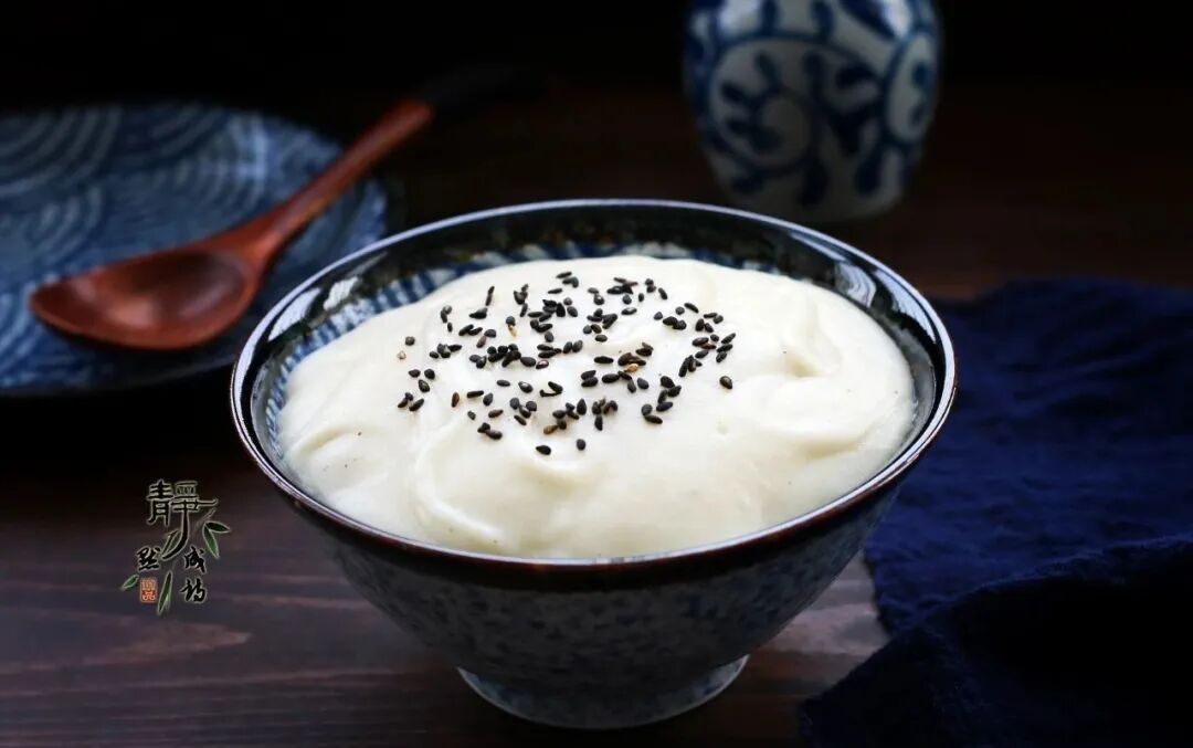 【材料】:铁棍大米、山药、高汤、盐、现磨黑胡椒碎、熟黑芝麻或海苔。