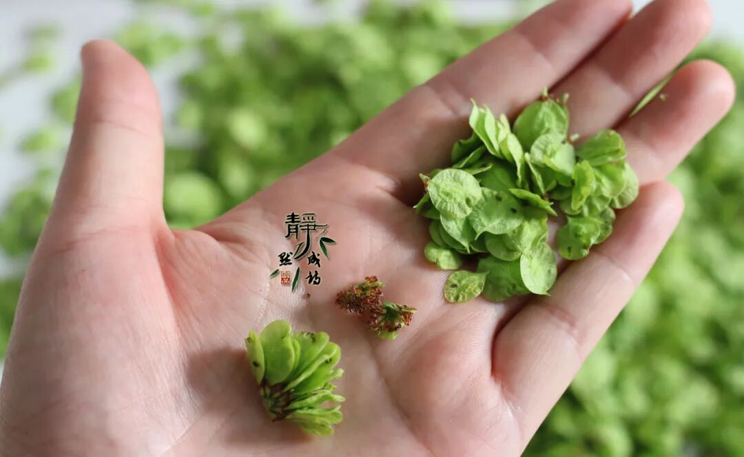但就在前几年,我对榆钱的态度发生了180度的转变。这源于我成为了一名美食领域的作者,参与某个平台的活动,买来榆钱,初尝榆钱滋味后,就爱上了它。