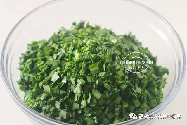 2、拌馅儿时,先淋油,包馅儿之前再放盐拌匀,可以非常非常有效地防止韭菜出汤,直到做最后一个饼,韭菜都不会出汤的。