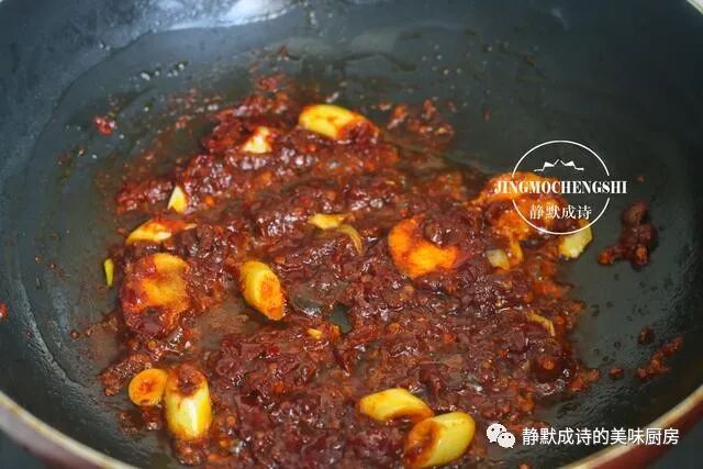 2、最后的泼油这步不能省,多放些蒜末和花椒,用热油激香,油也要尽量多放些。
