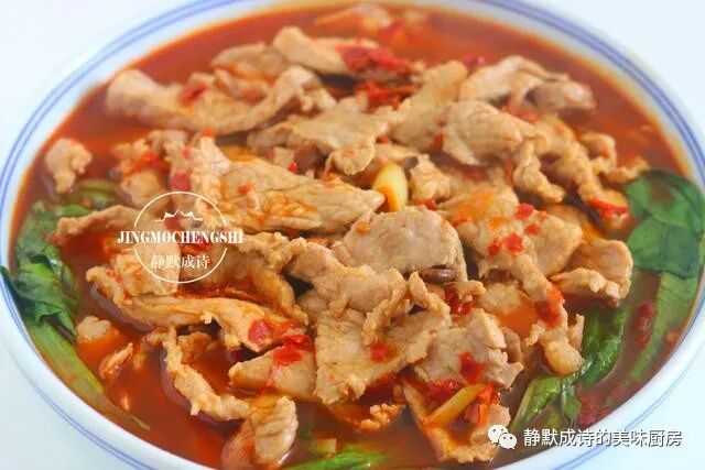 一年四季,水煮肉总是隔三差五就煮上一次,雷打不动,这道菜,就是有这样的吸引力。而唯一不同的是,水煮肉片的配菜会随着季节的转换而有所不同。随着这菜出现的频率越来越高,我的做法也越来越精简,十几分钟就能做上一大盆。肉片滑嫩,配菜香辣,但凡吃水煮肉的时候,一锅饭,一个菜就够。所以,在我家,我称水煮肉为懒人菜。