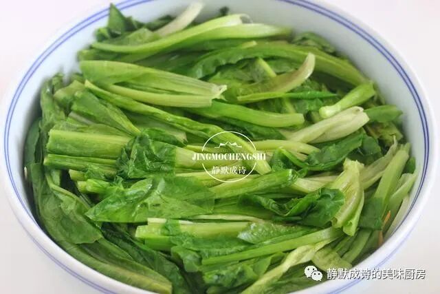 3、准备好配菜,洗净之后,焯水断生,码在大碗的底部。我用了黄豆芽和油麦菜。