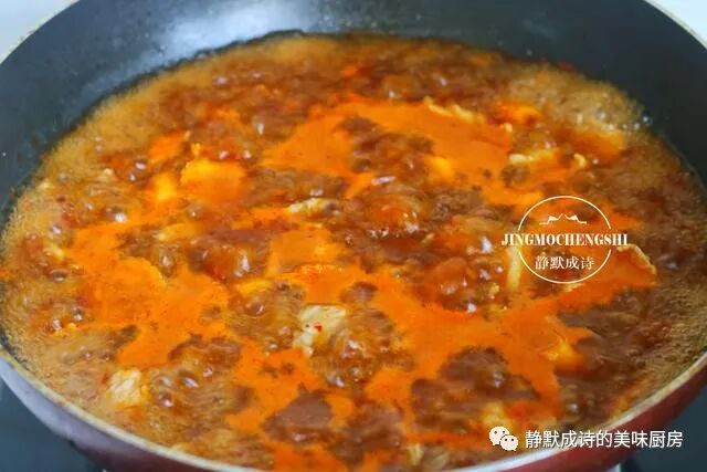 5、加入适量清水,调入少许白糖和酱油,大火煮开,然后继续煮四五分钟。