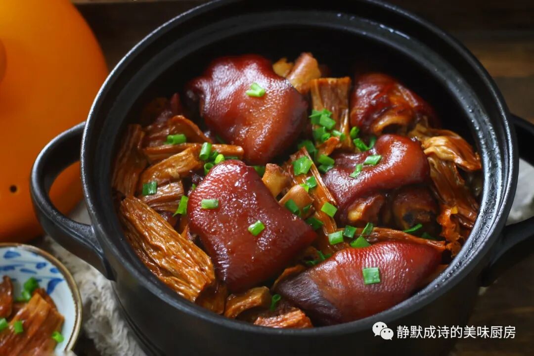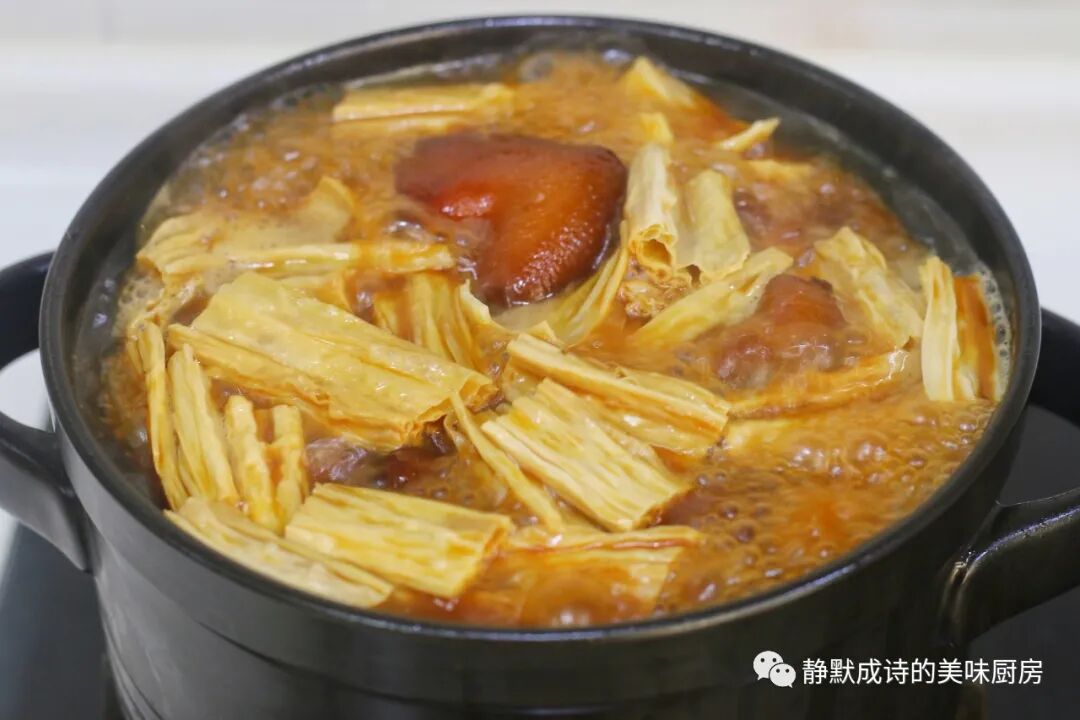 前段时间有朋友说,想学腐竹的吃法,喏,今天就来了。我用纯黄豆腐竹和猪蹄炖了满满一锅,猪蹄软软糯糯,香而不腻,腐竹吸足了汤汁,香气四溢。爱吃猪蹄的不要错过,爱吃腐竹的更要学一学。