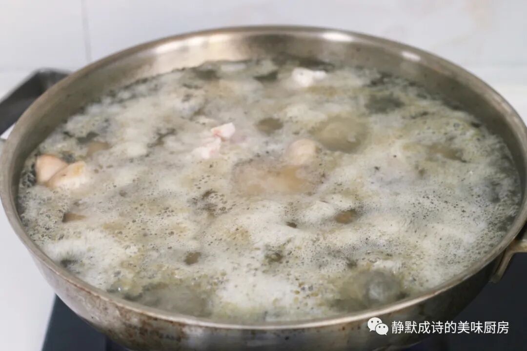 4、猪蹄需要先焯一下水,去去腥味儿:猪蹄冷水下锅,加点儿姜片和黄酒来去腥,大火煮开,及时撇掉浮沫。