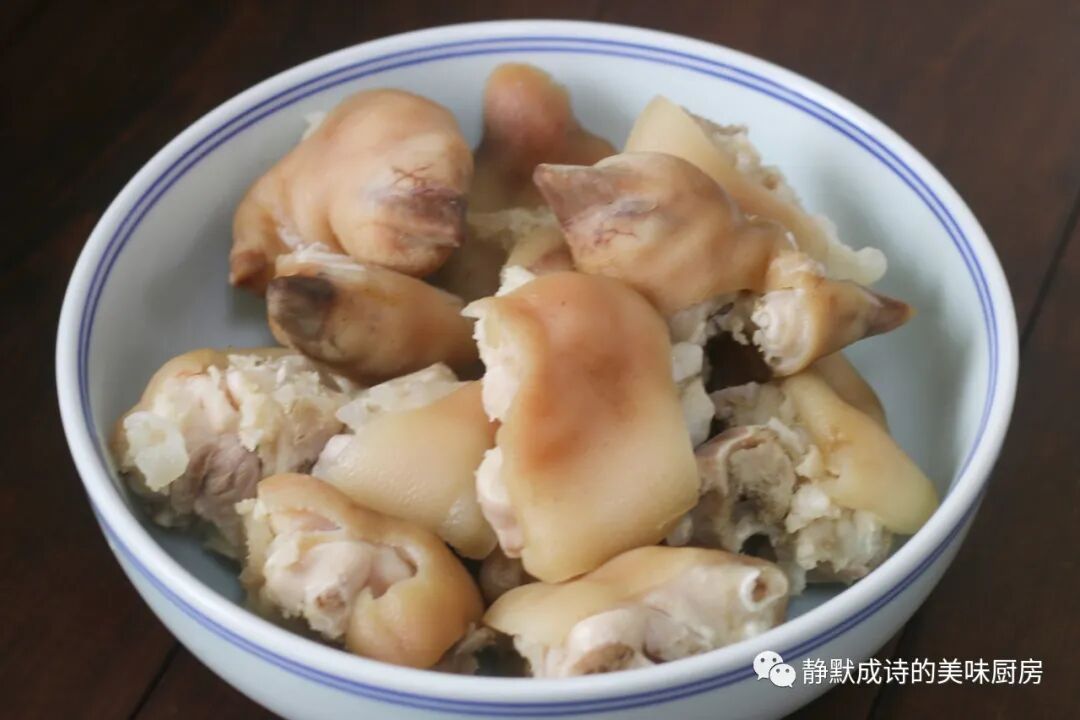 5、多煮一会儿,把猪蹄的血沫全部给逼出来后,再捞出,洗净沥水待用。