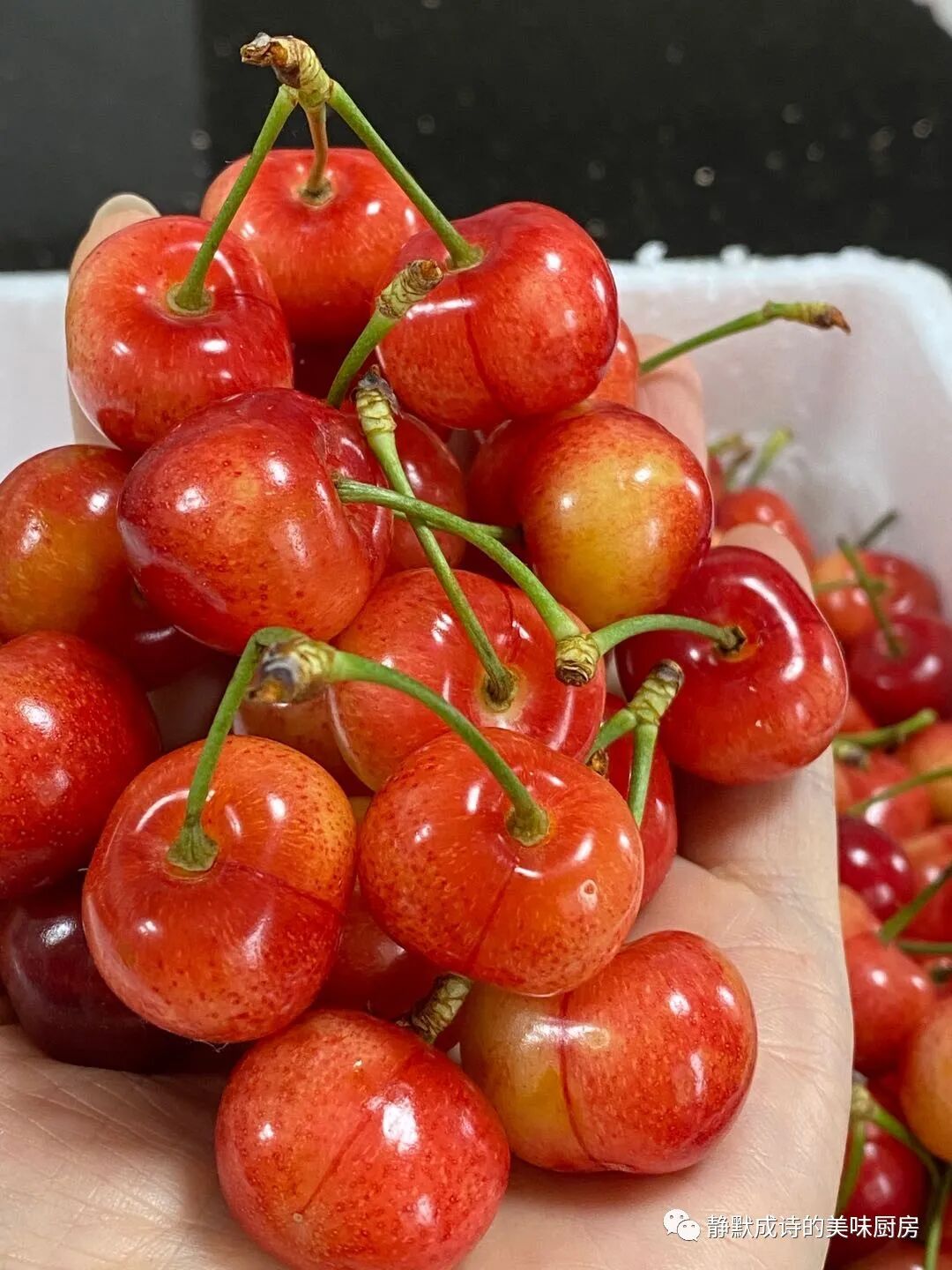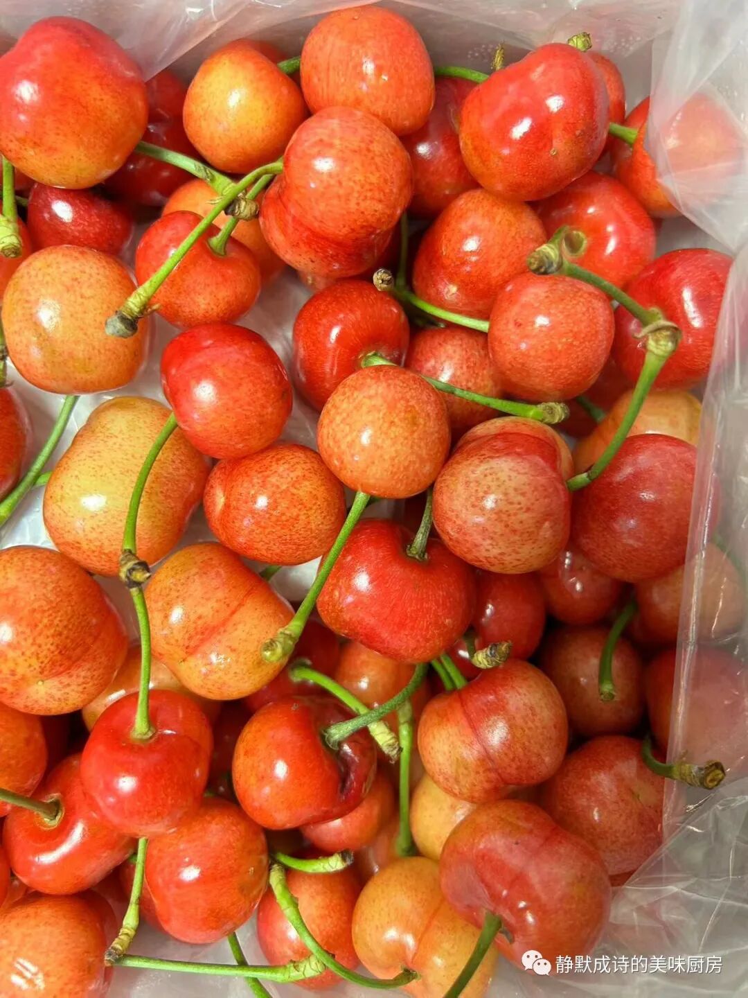 由于樱桃采摘不敢十成熟,所以收到的美早有的颜色深,有的会浅,大家先挑深色的吃。女人多吃樱桃,可补铁补血,有条件的一定要多吃,它的赏味期也很短。