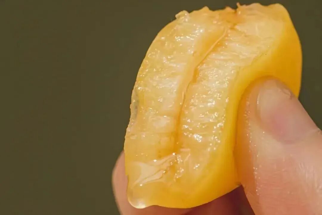 小白杏皮薄核小,表面光滑无毛,肉质清灵、细腻,汁液饱满。轻轻掰开,果肉呈现蜜色,晶莹剔透。吃在嘴里,果肉化渣、无纤维,汁水浓郁,口感纯甜、绵密,像一个甜蜜小炸弹,甜得恰如其分。