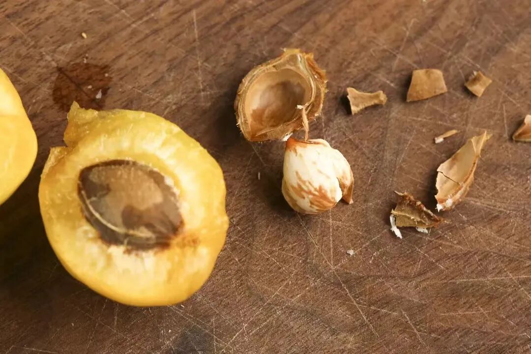 小白杏的魅力不仅在于果肉,其实里面的杏仁也可以吃的。新鲜的杏仁带着芬芳的香气,吃起来也是相当的脆口,甚至还能够制作成杏仁味的甜品。