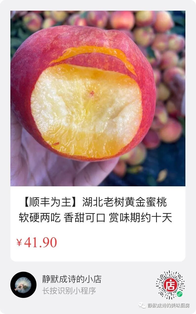 跟前年咱们大家都吃过的那款陕西的黄金蜜一样,这款湖北老树黄金蜜桃也是只有小范围内才有,除了产地当地,其他市面上是没有的,一款超级好吃的没有被商业化的桃子。