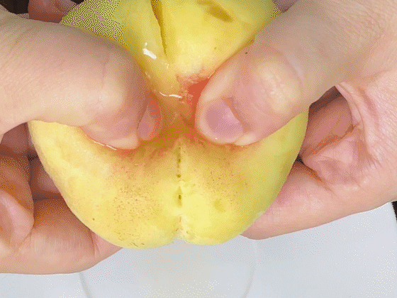 放两天后,蟠桃会变软,随手捏一捏,果肉裹着一汪甜汁,水润中带着浓郁的花果桃香!